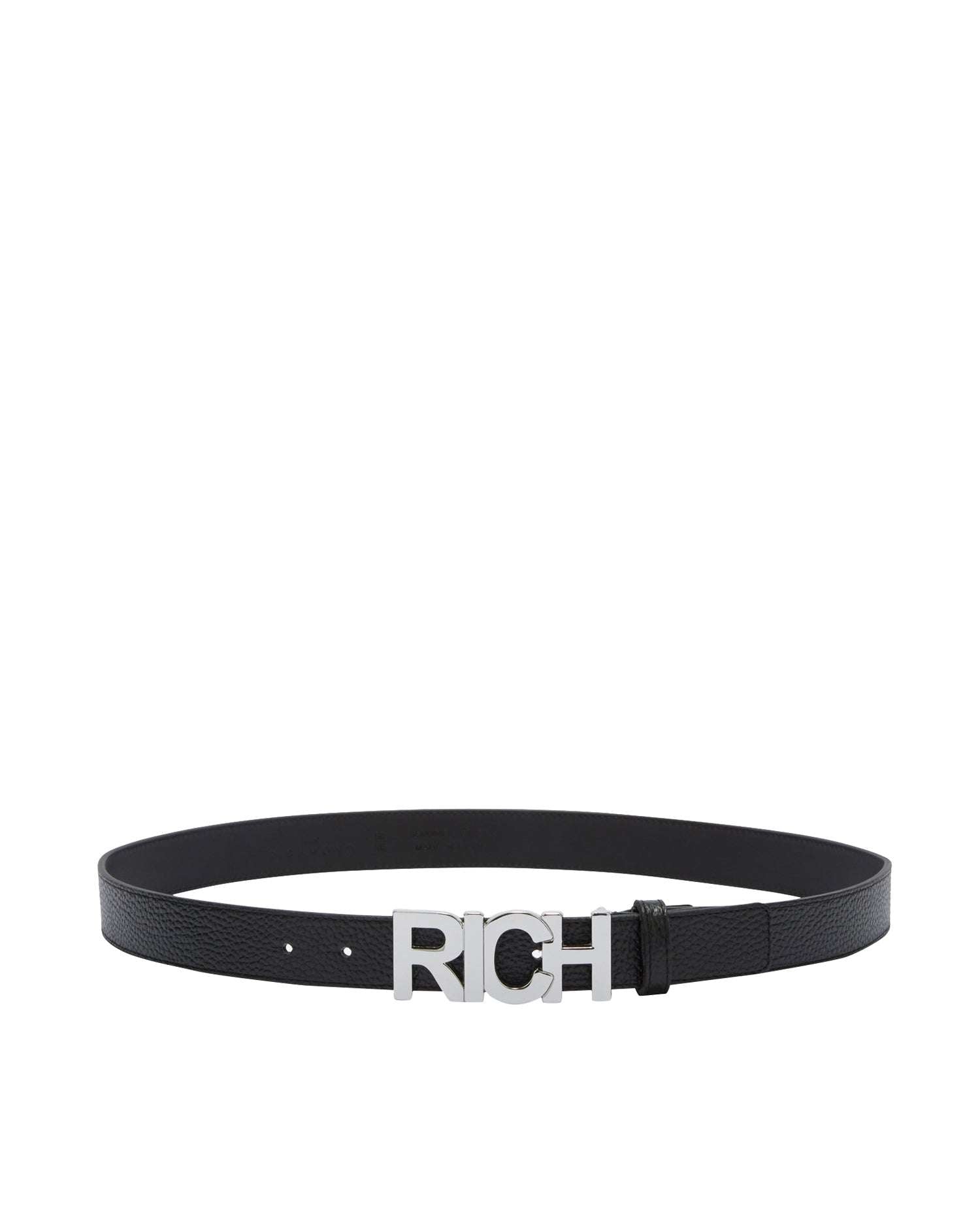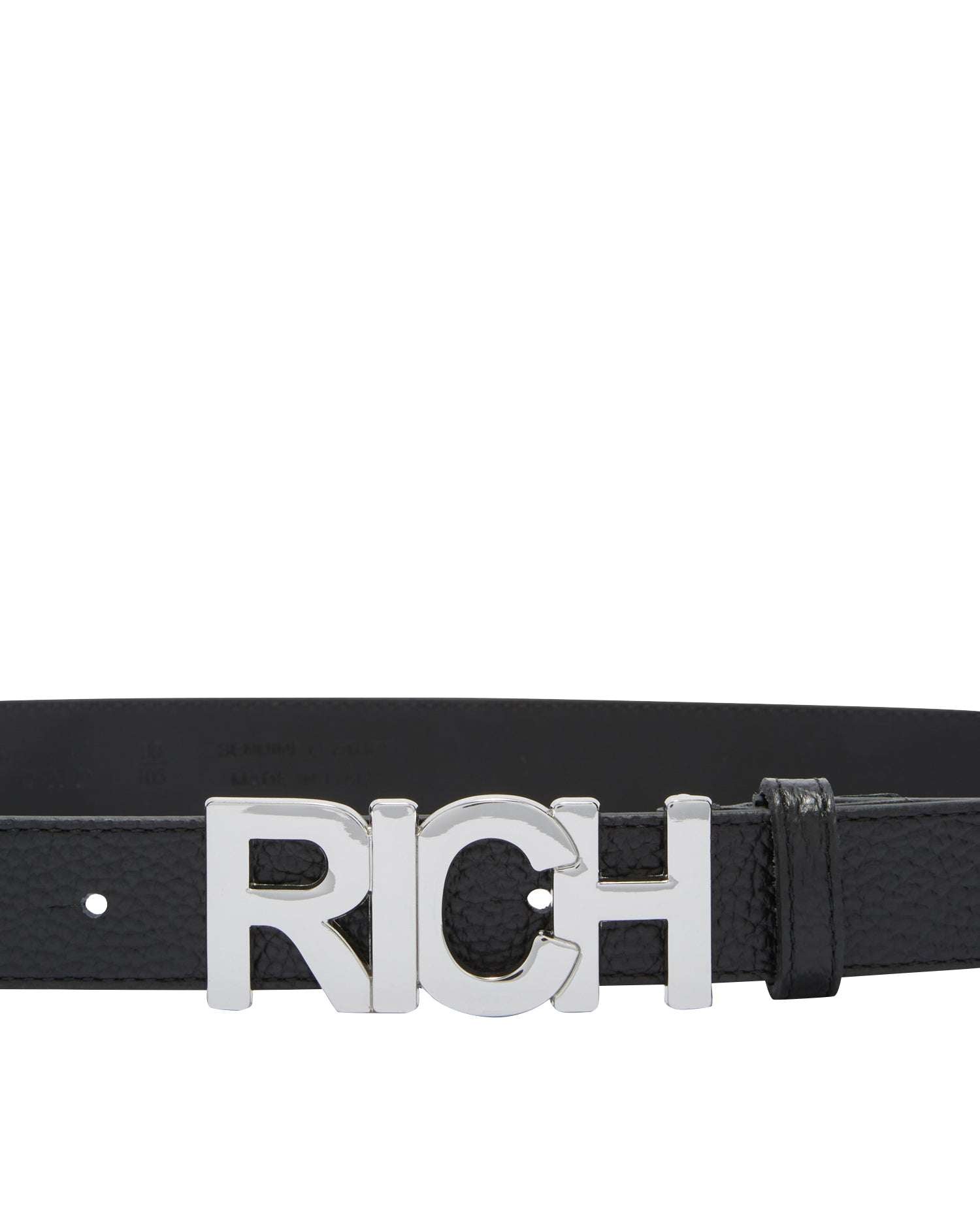 Cintura dal carattere deciso, impreziosita da una fibbia metallica con scritta “RICH” in rilievo. La finitura martellata della superficie aggiunge un tocco moderno e grintoso a un accessorio perfetto per valorizzare ogni outfit.