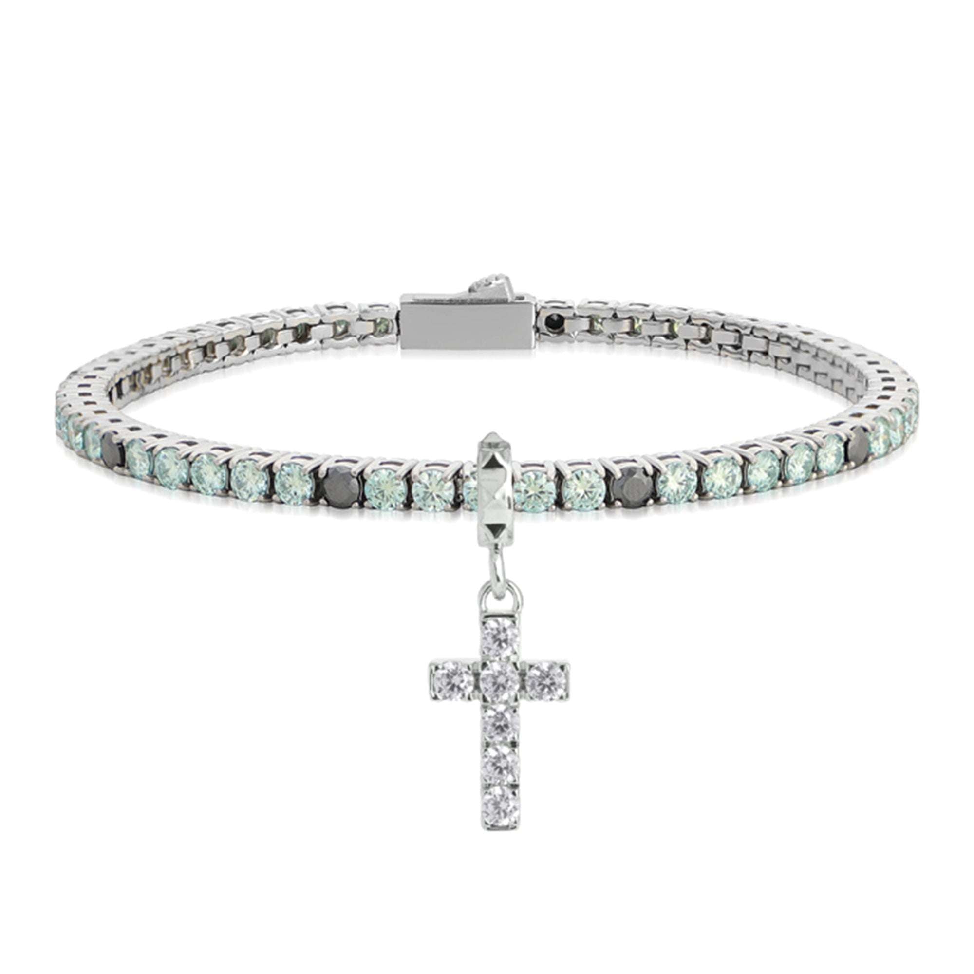 Tennis in lega di titanio silver IP e diamanti lab black e light green ct. 4.80 - L 17cm