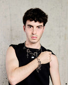 Un bracciale dal carattere unico, dove forme fluide, stelle e scritte si intrecciano in un equilibrio dinamico. La composizione con charms, sospesa su una catena sottile, crea movimento e originalità, mentre il dettaglio “LOVE” aggiunge un messaggio personale e universale.