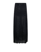 Gonna lunga dal carattere sofisticato, realizzata con una struttura interamente in rete impreziosita da micro applicazioni distribuite con armonia. Il design gioca con trasparenze e volumi leggeri, creando un effetto scenografico di grande impatto, ideale per interpretare un’eleganza contemporanea e ricercata.