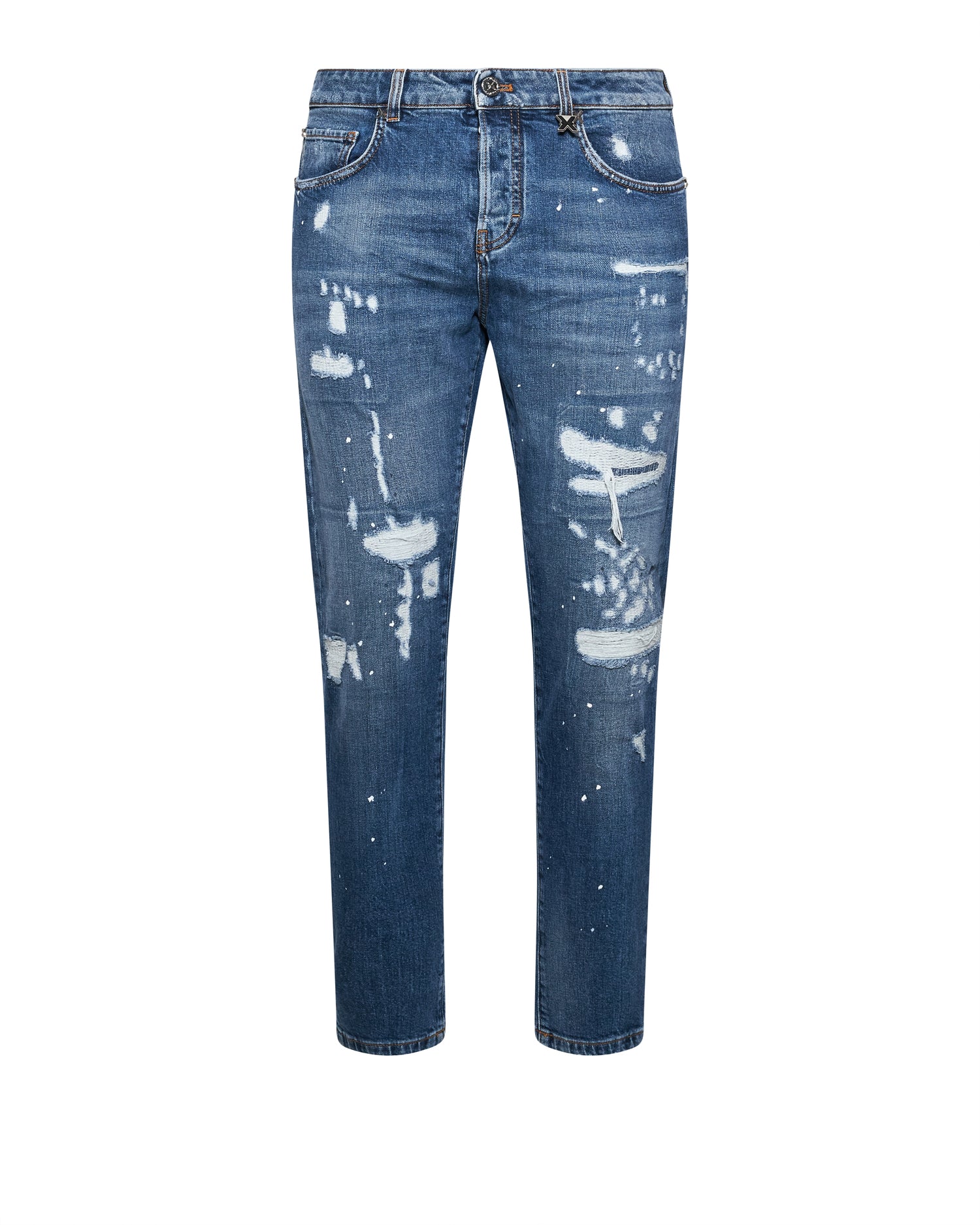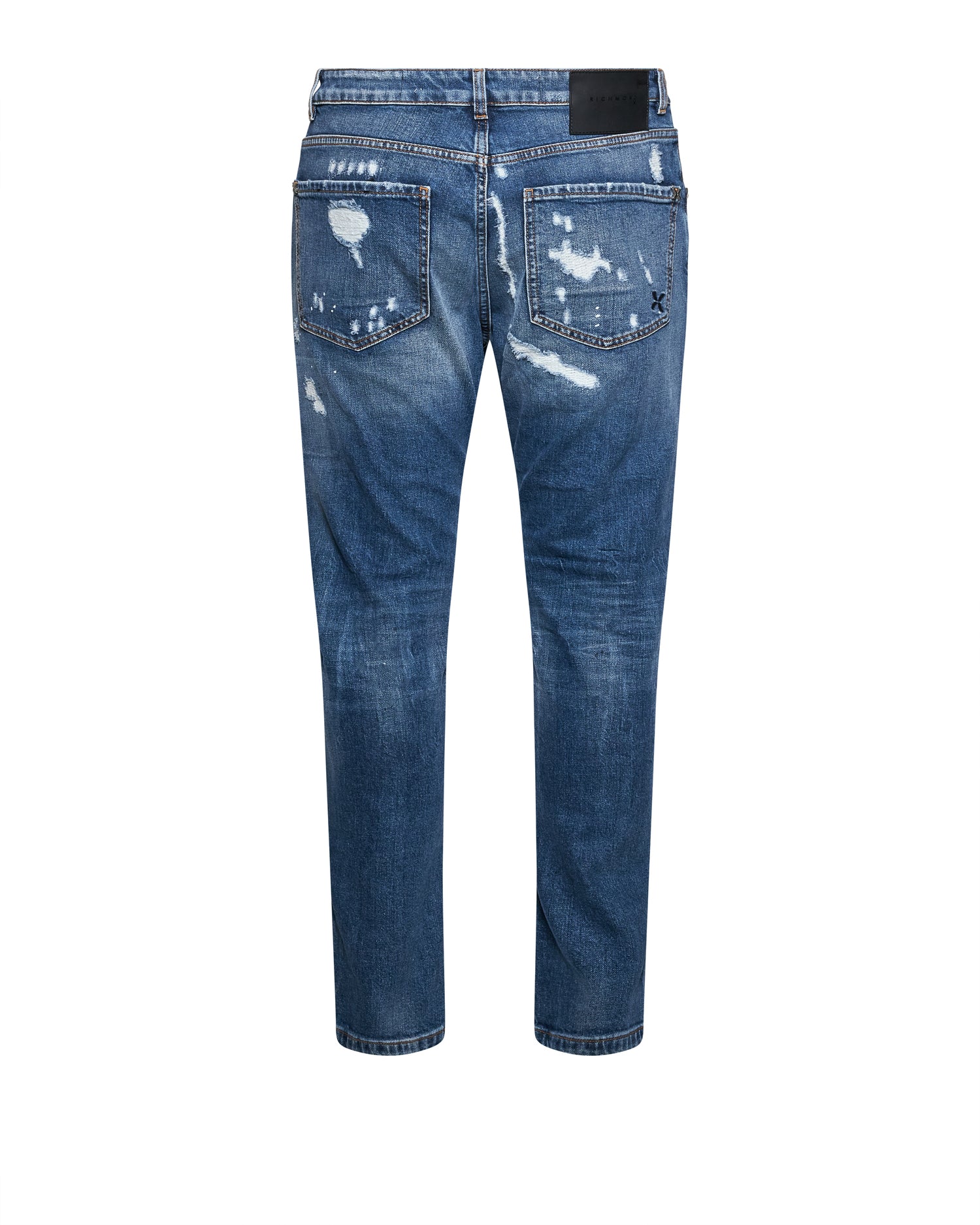 Jeans dal carattere deciso e dall’estetica contemporanea, pensati per chi ricerca un capo iconico dall’impatto visivo forte. I dettagli destroyed distribuiti lungo la superficie conferiscono profondità e dinamismo al design, creando un equilibrio tra attitudine urbana e ricercatezza stilistica. Un modello che interpreta il denim in chiave moderna, mantenendo un’identità luxury e distintiva.