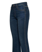 These bootcut jeans are embellished with precision applied studs along the sides and on the pockets, for a contemporary style with a bold character. Ideal for giving a bold touch to any outfit, it stands out for its attention to detail and refined design.