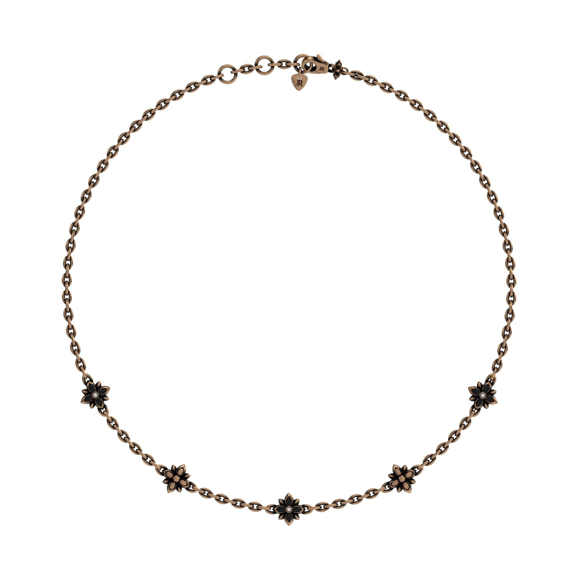 Refined necklace embellished with small stylized flowers arranged along the chain, for a delicate and feminine touch. Perfect to wear alone or combined with coordinated earrings.
