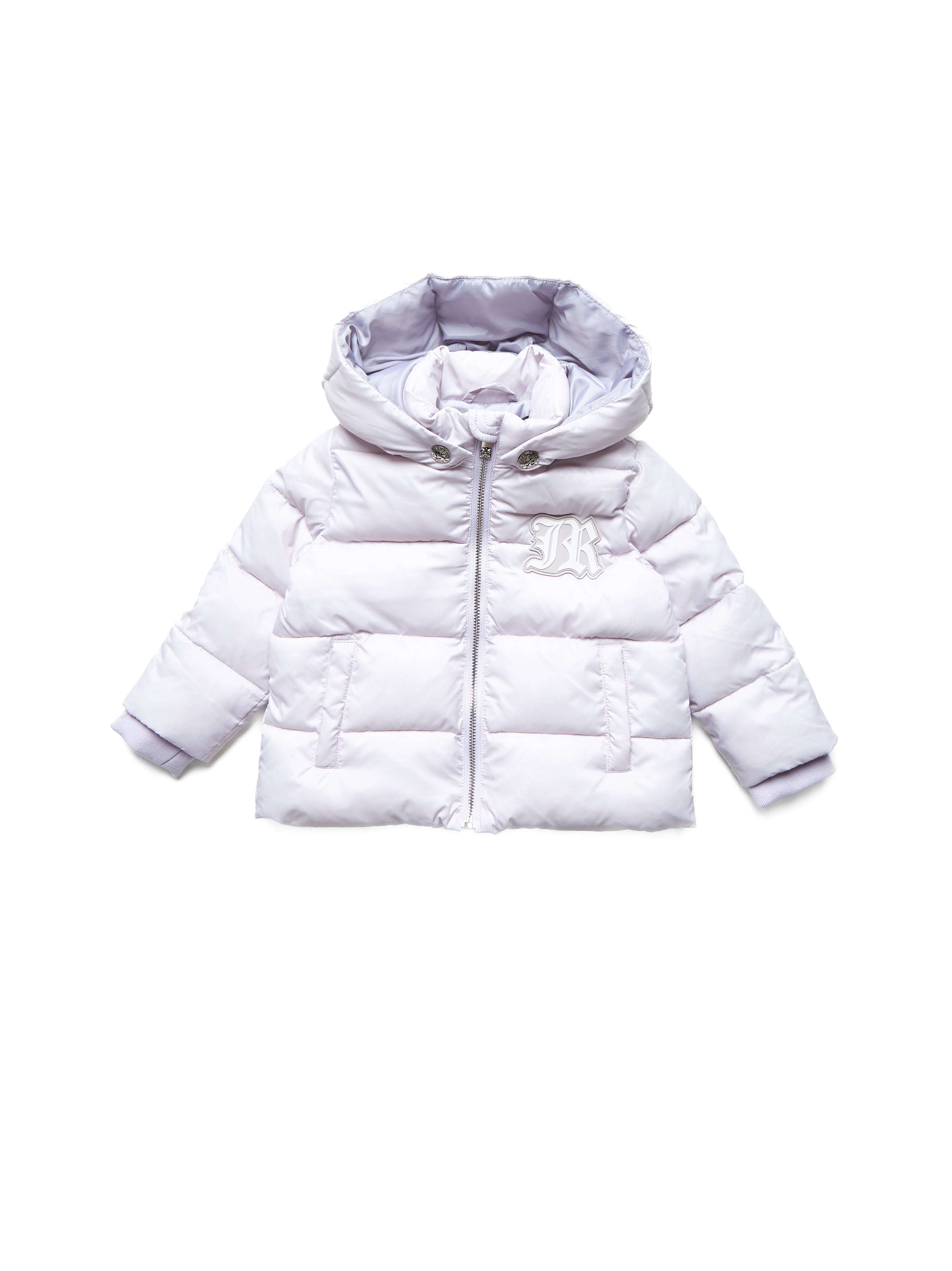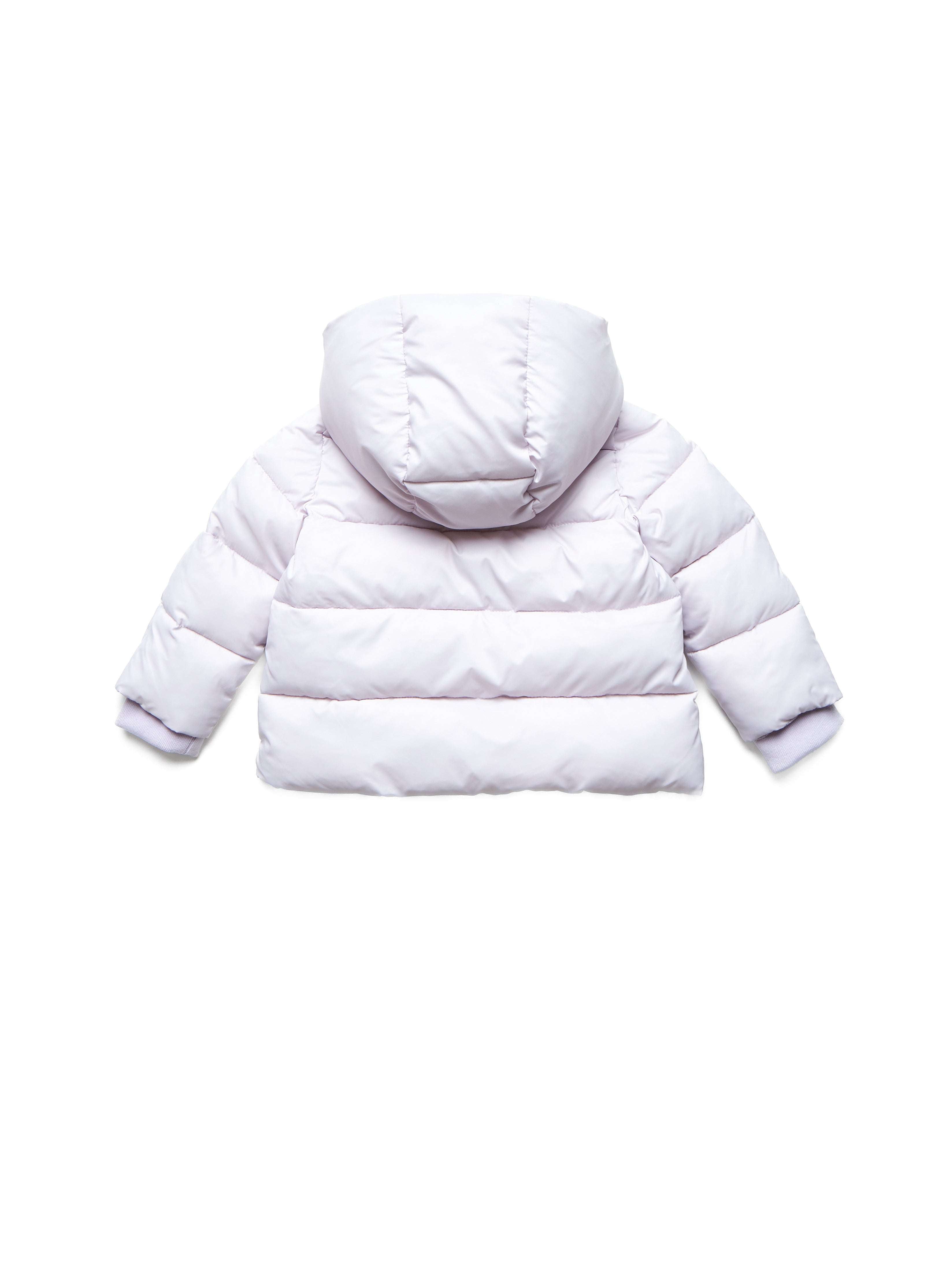 A light down jacket with a defined volume, enriched by a hood with a gathered effect. A functional garment that combines comfort and style.