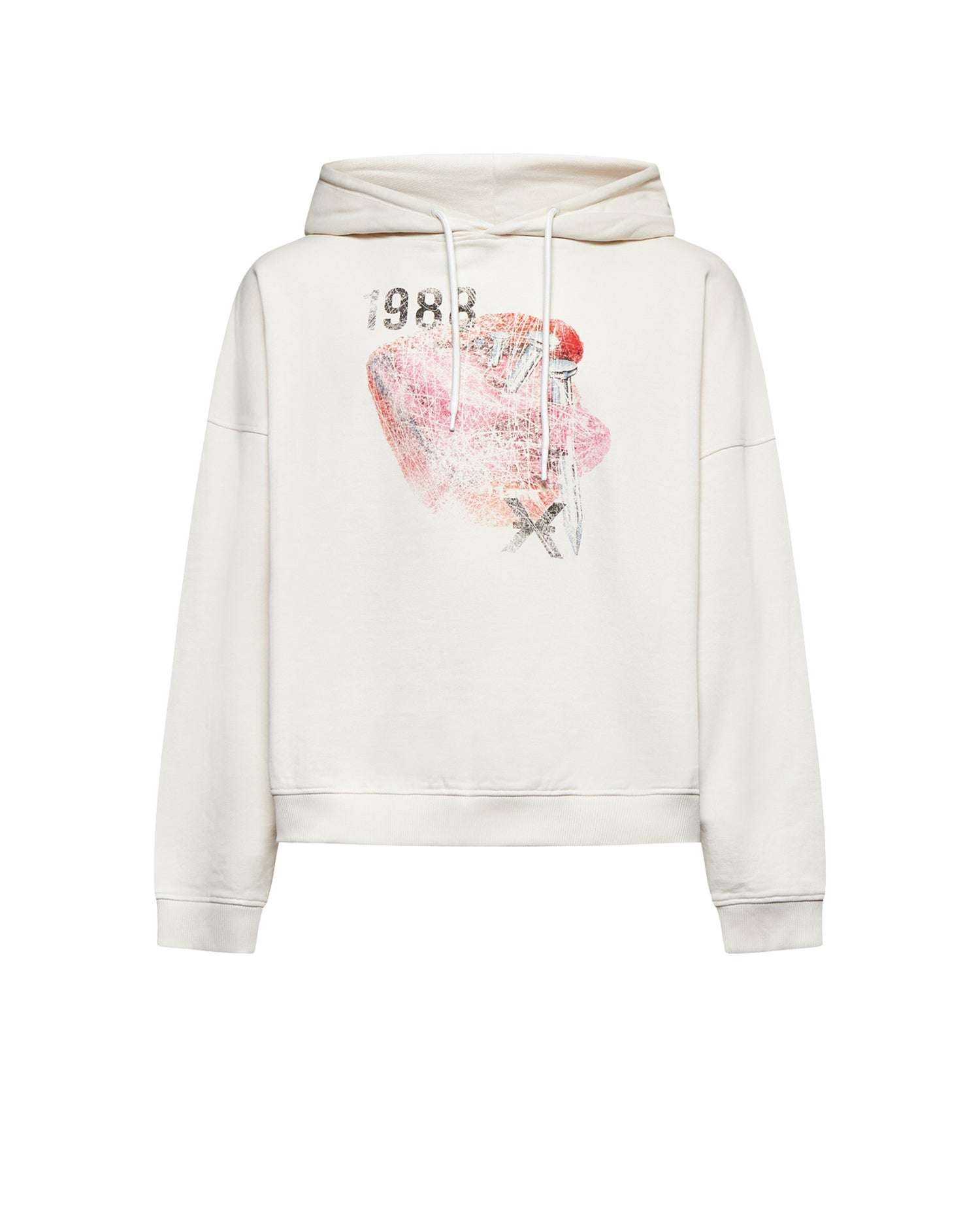 Hooded sweatshirt with contemporary design enriched by an artistic print with "1983" number and graphic details inspired by urban art. A distinctive garment that gives character and personality to any casual look, perfect for those looking for a creative and modern touch.