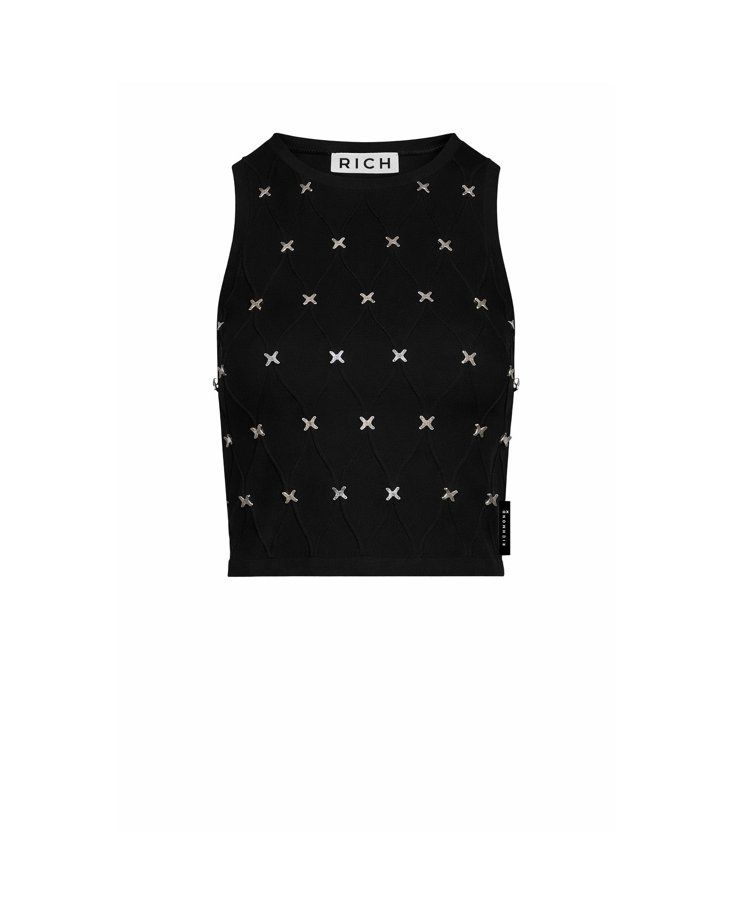 Top con scollo giro e dettaglio gioiello
