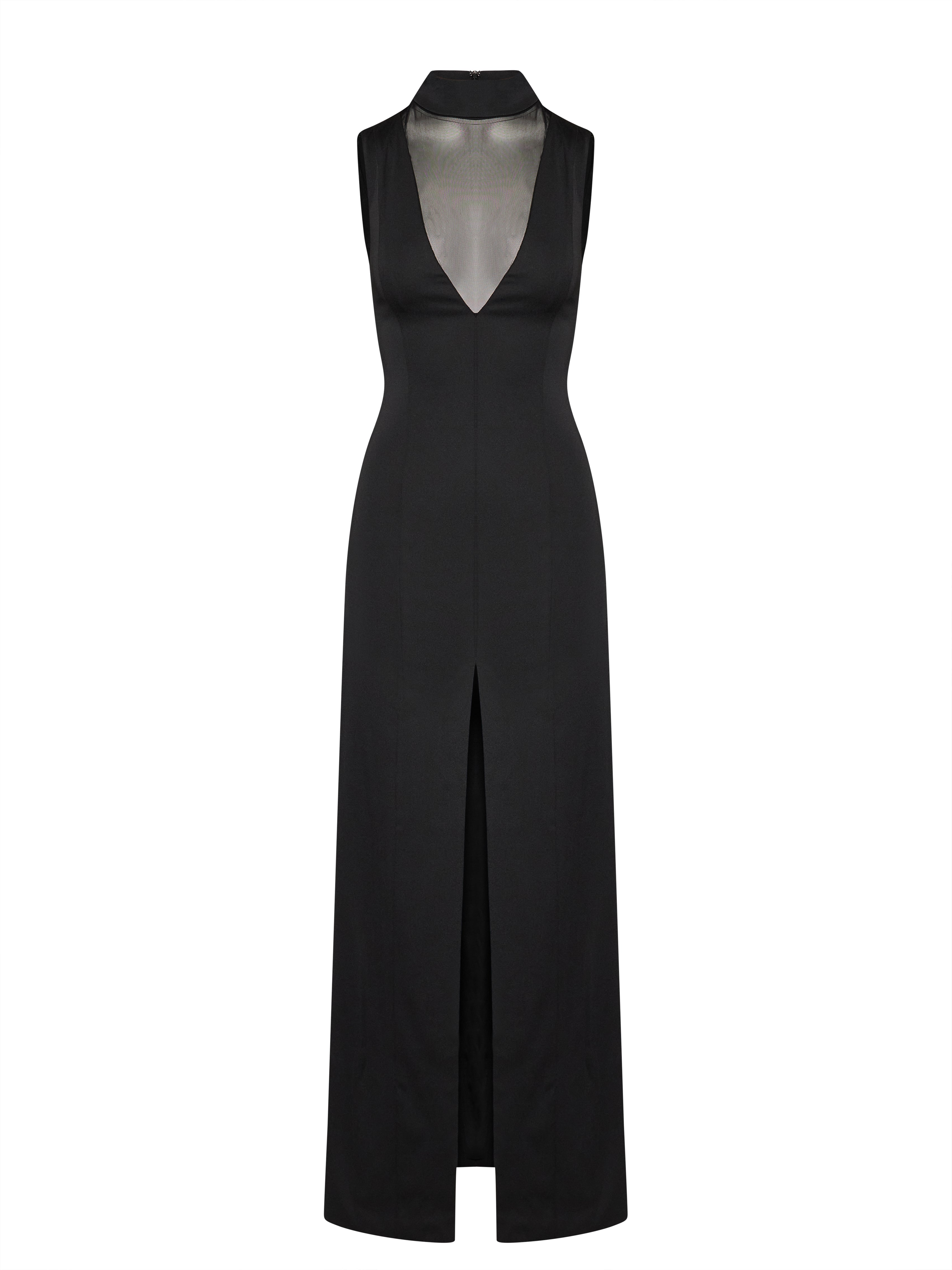 Abito lungo con scollo profondo e spacco frontale