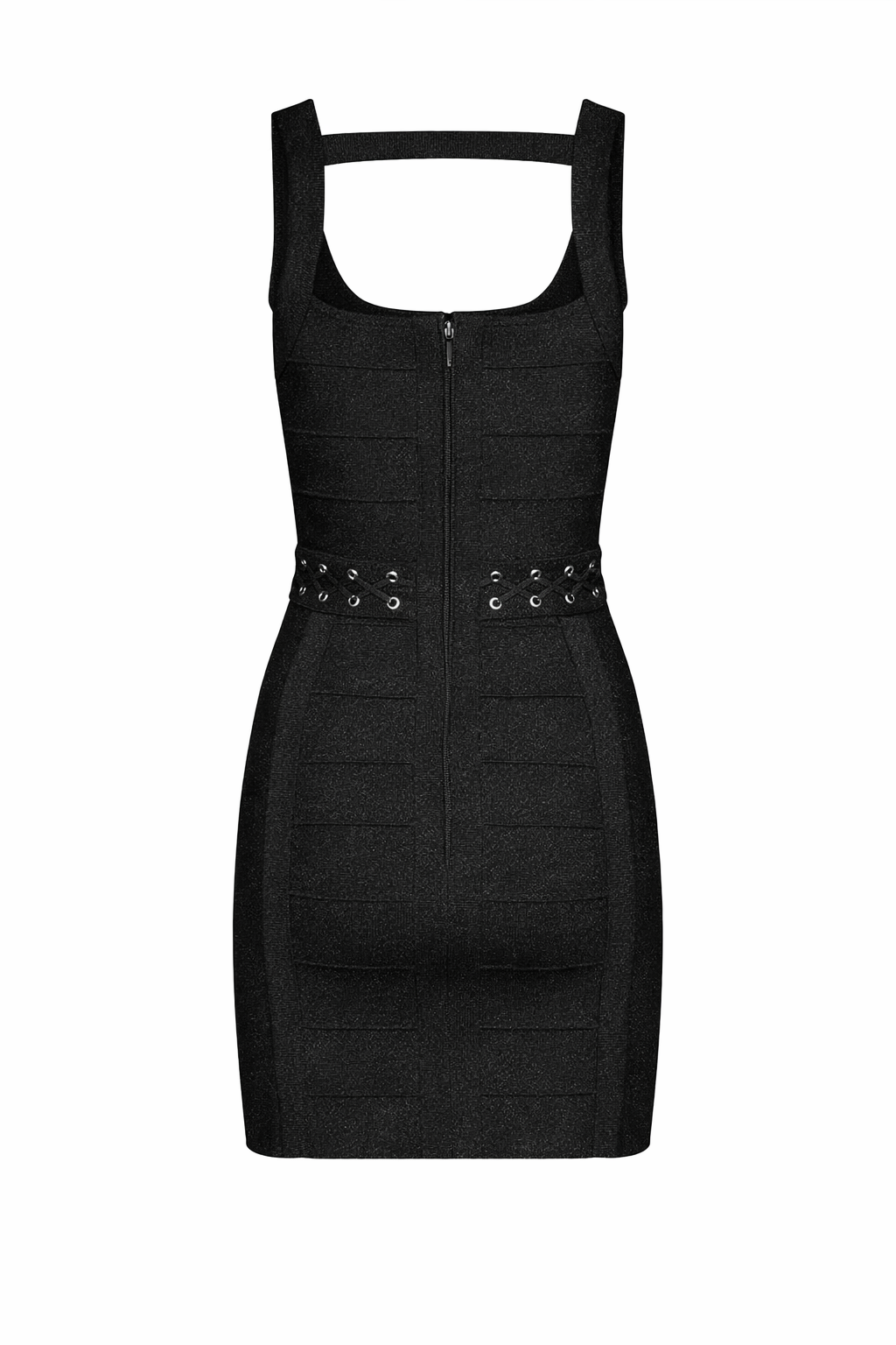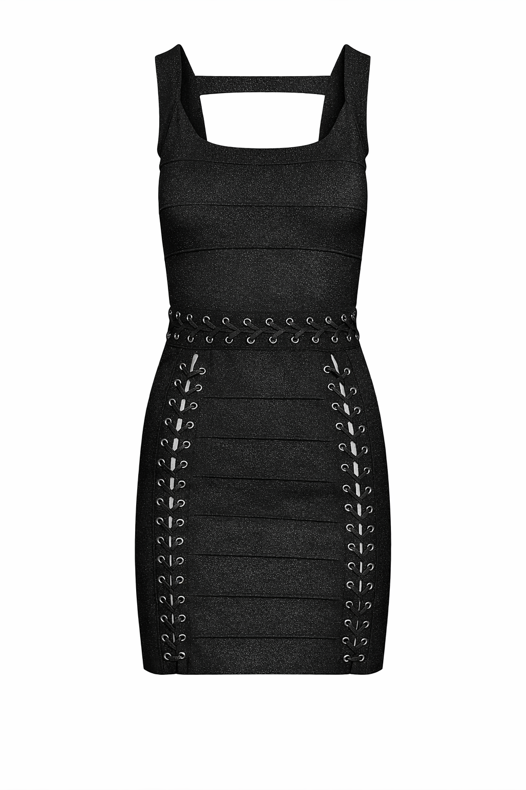 Abito corto con dettagli traforati e scollo strutturato
