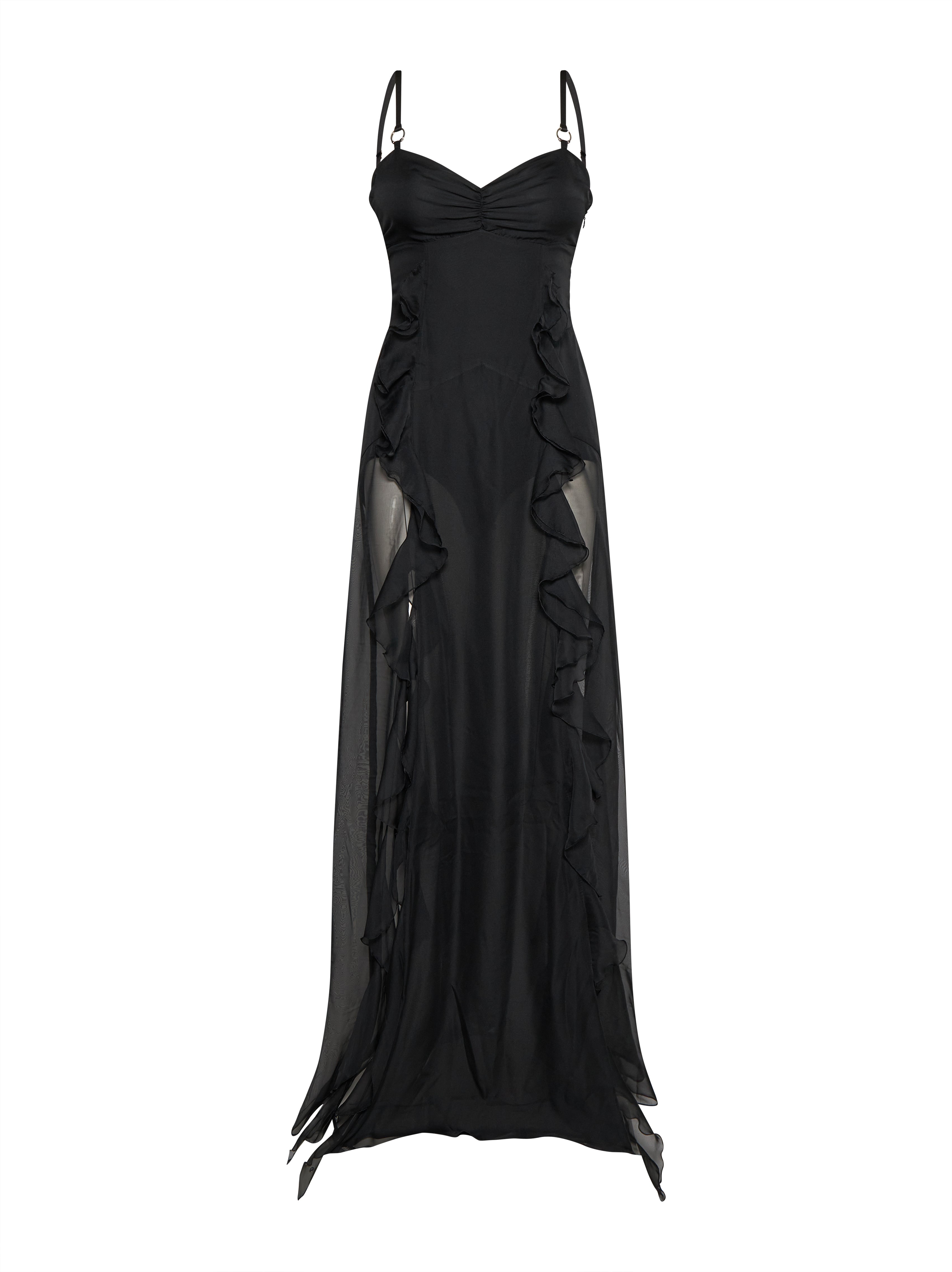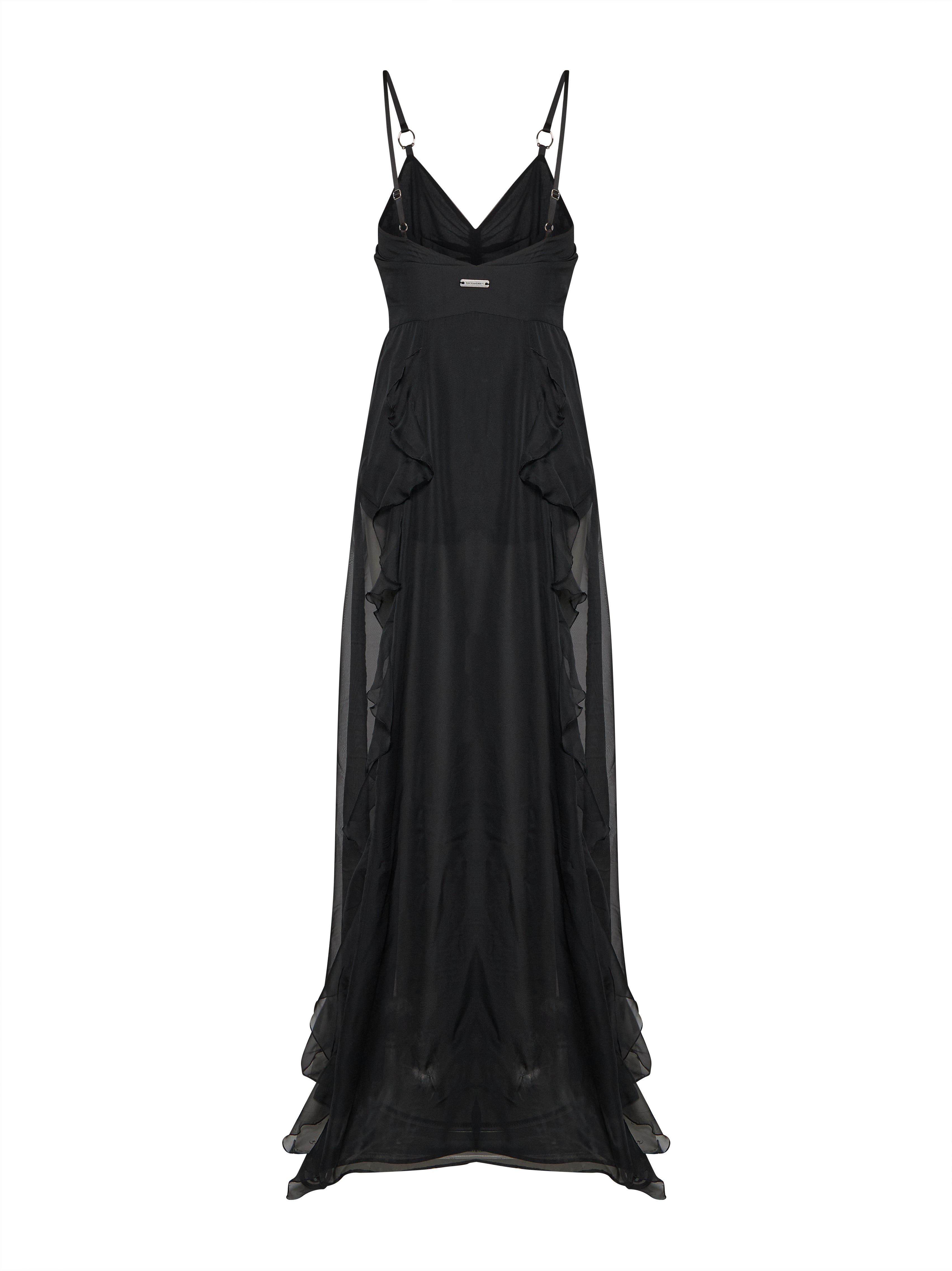 Abito lungo con spalline e dettagli trasparenti