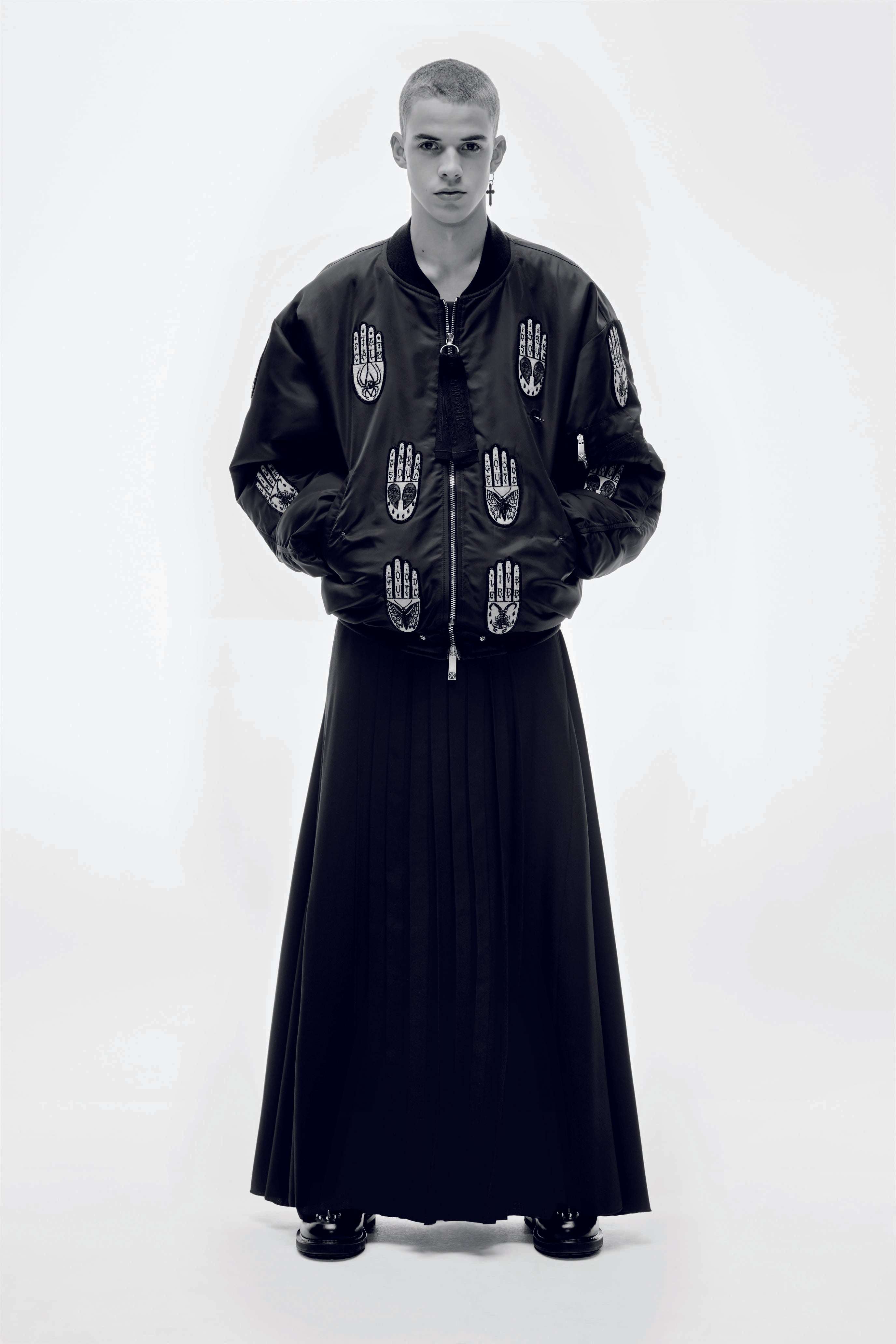 Black trousers with skirt effect panel