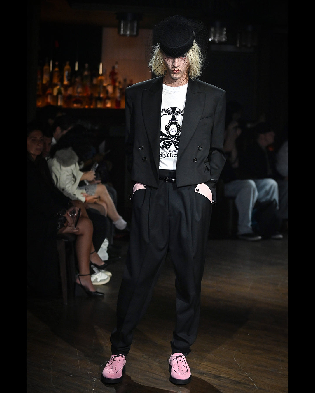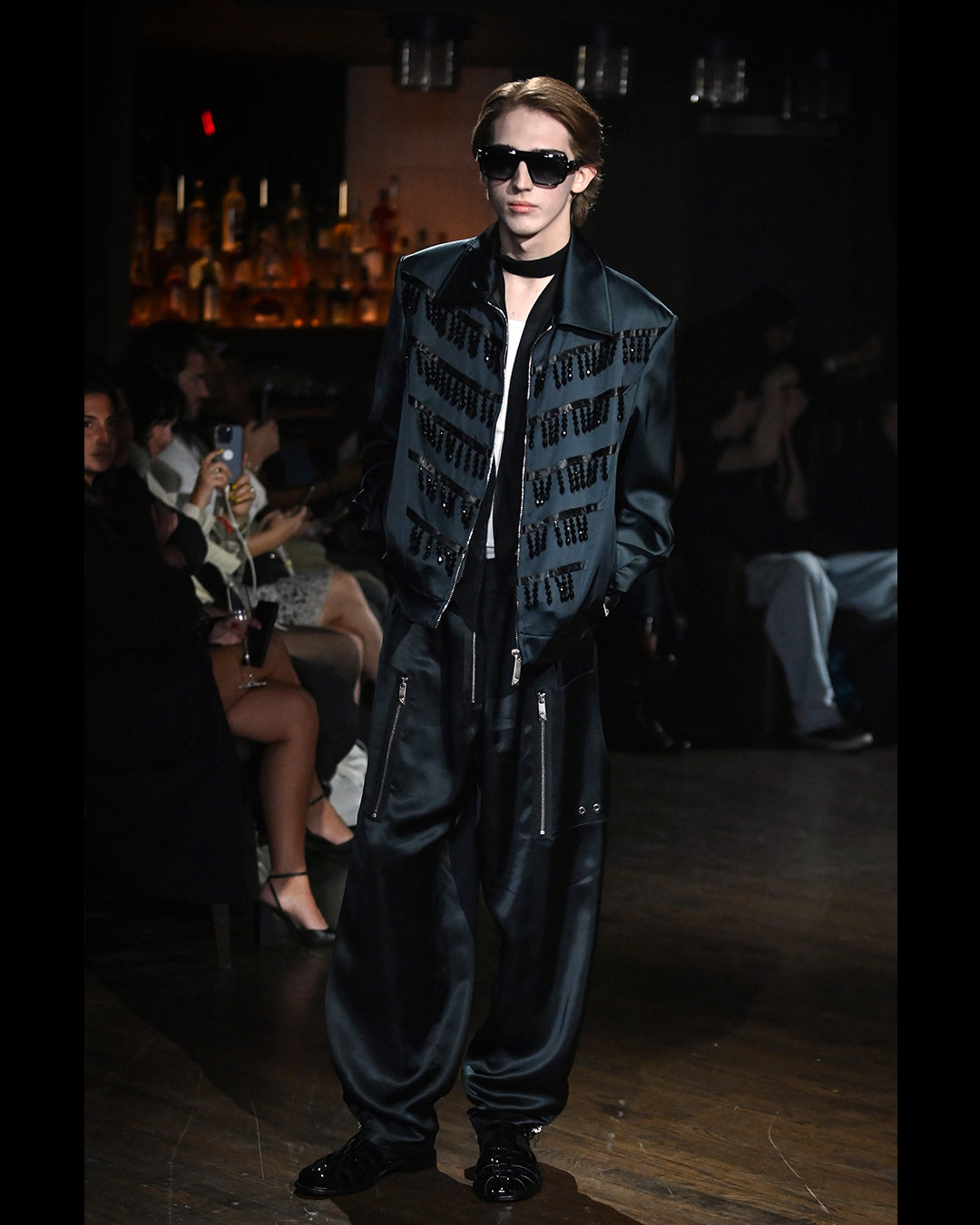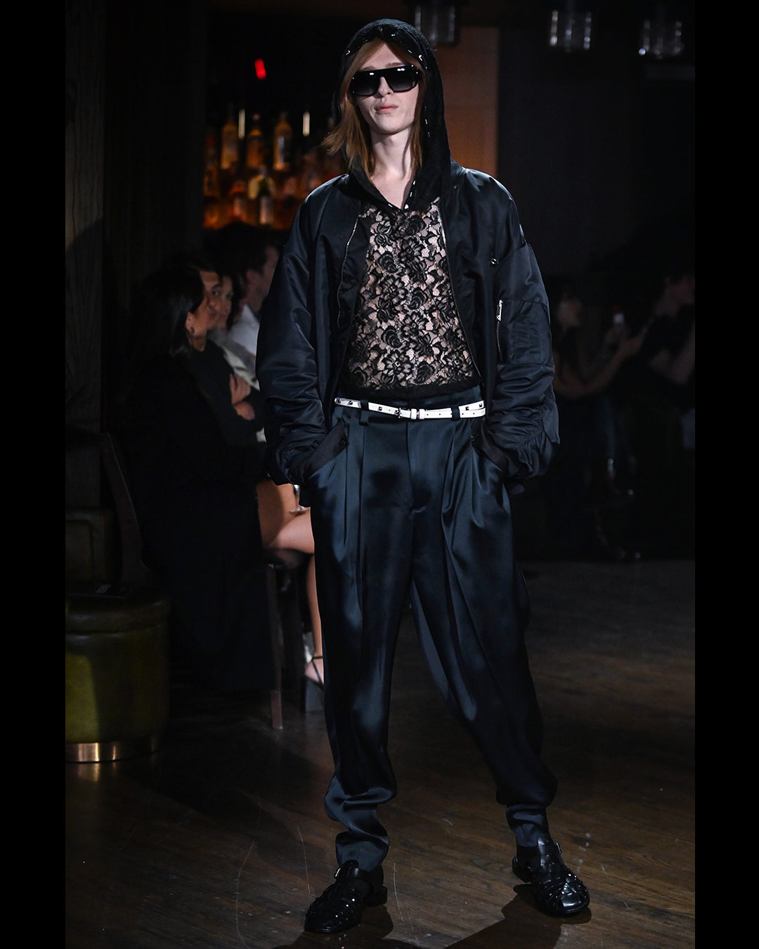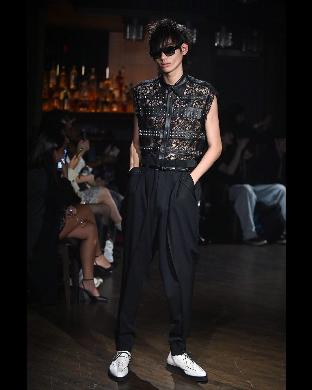 La SS26 è un omaggio al DNA musicale del brand, intrecciando soul boys anni ’70, America pre-punk, club chic e gotico. I contrasti dominano: satin e organza, pizzi e pelle, denim vissuto e ricami couture.