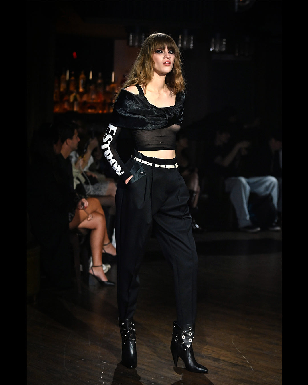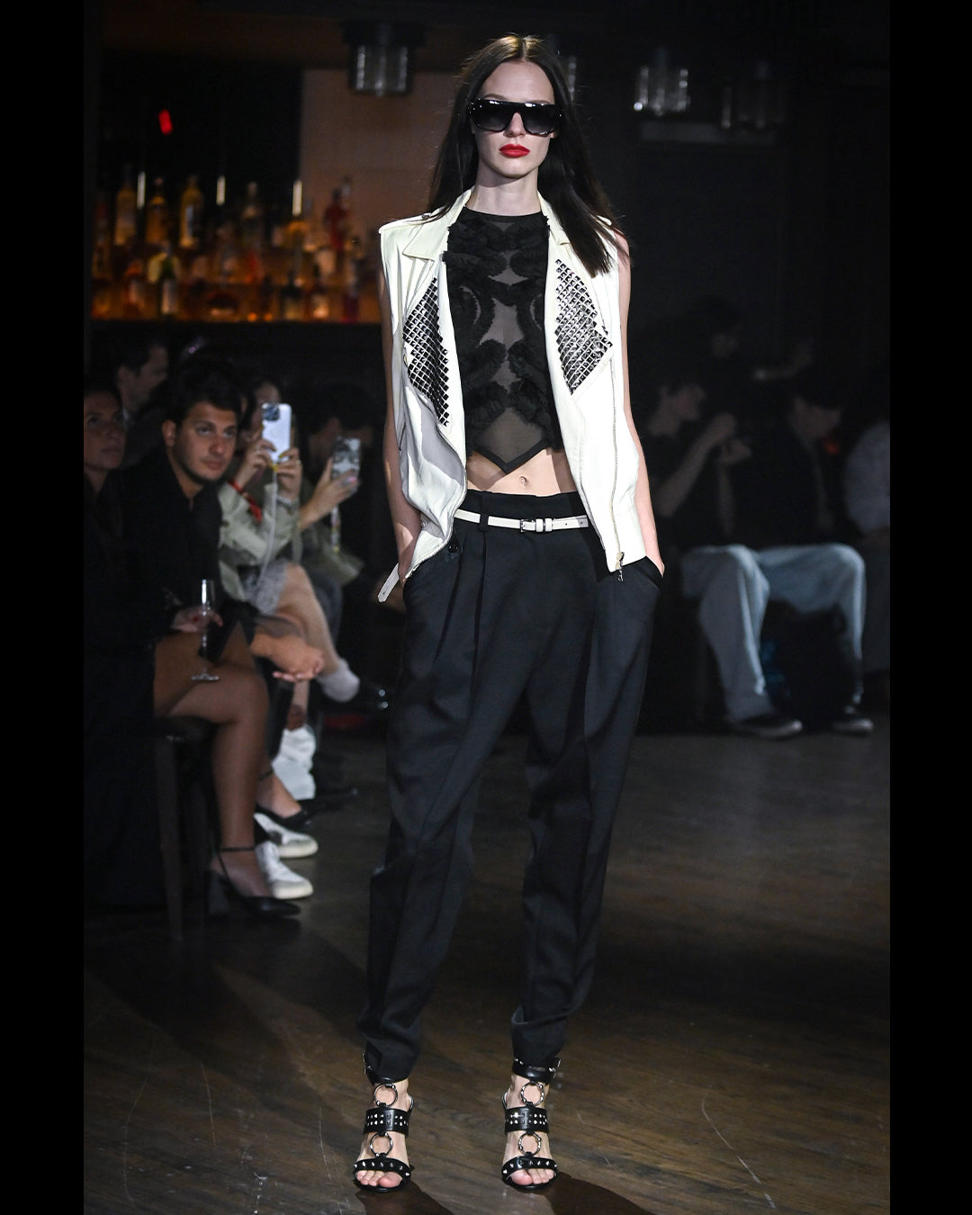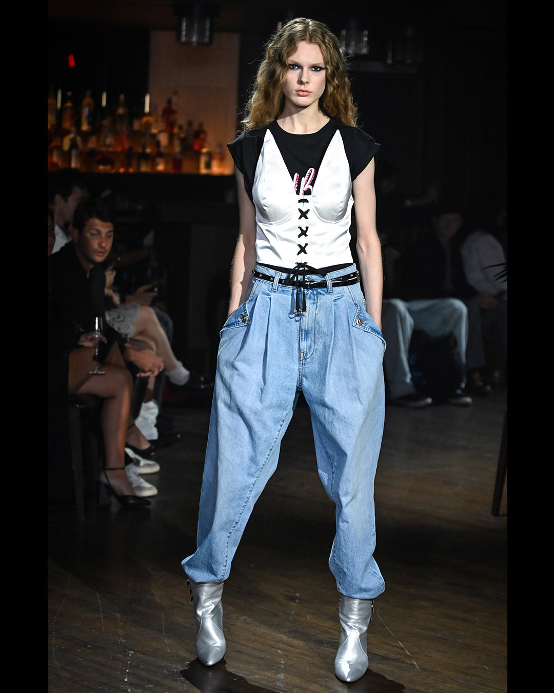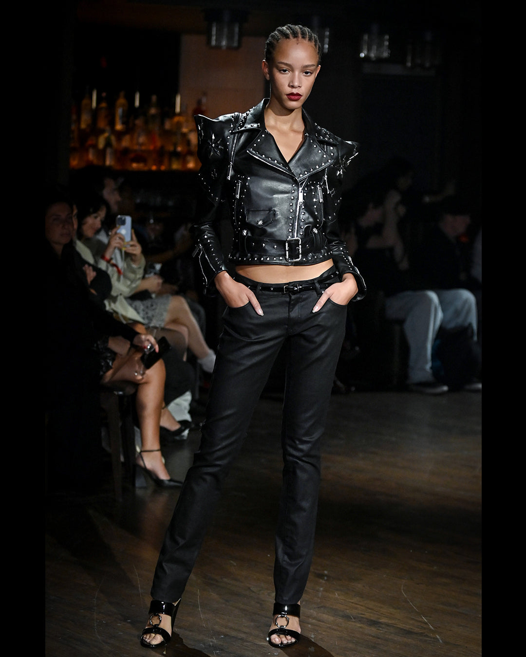 La SS26 è un omaggio al DNA musicale del brand, intrecciando soul boys anni ’70, America pre-punk, club chic e gotico. I contrasti dominano: satin e organza, pizzi e pelle, denim vissuto e ricami couture.