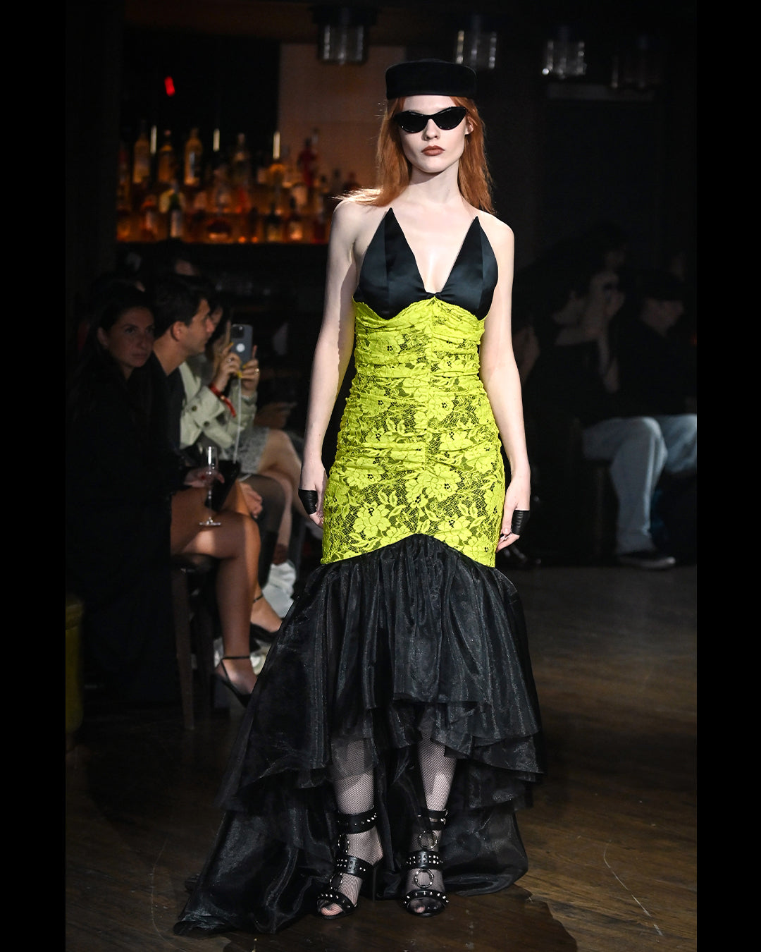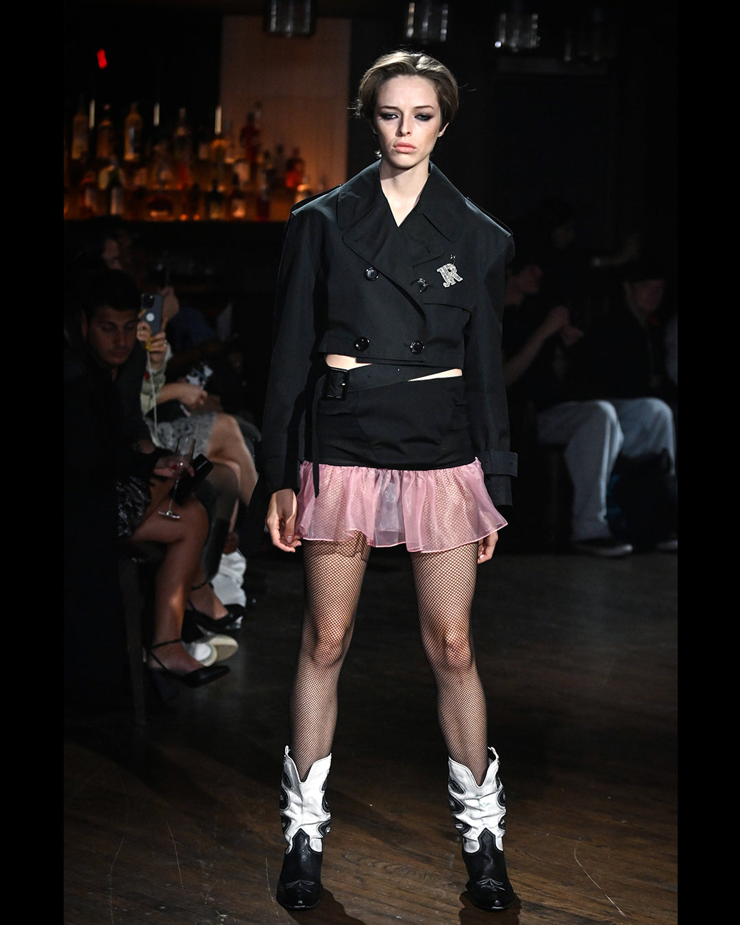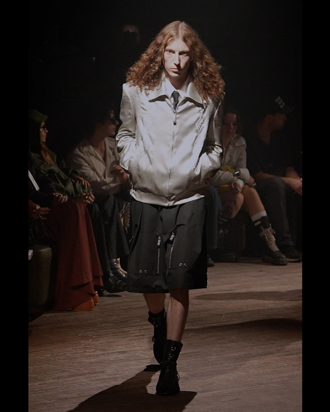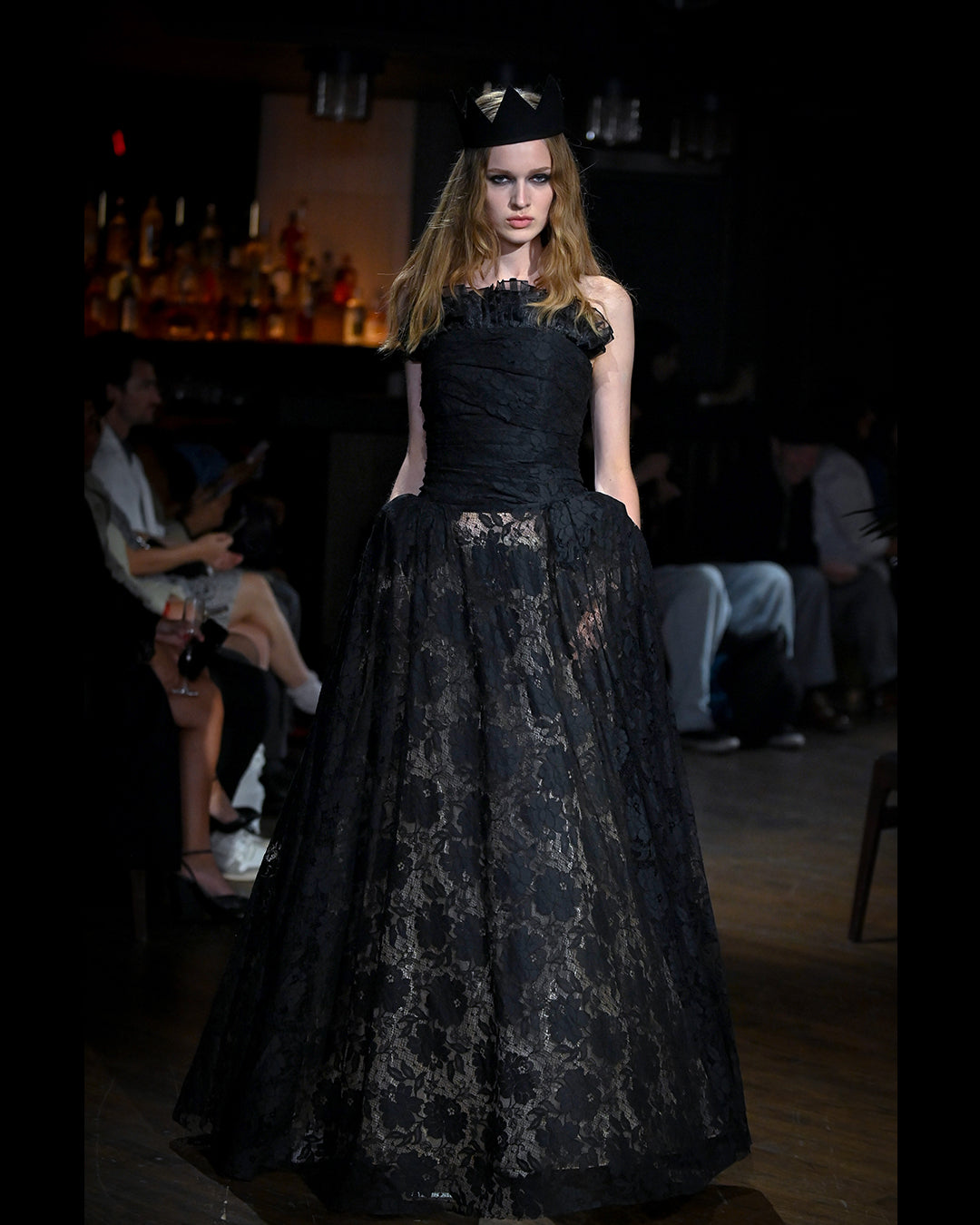 La SS26 è un omaggio al DNA musicale del brand, intrecciando soul boys anni ’70, America pre-punk, club chic e gotico. I contrasti dominano: satin e organza, pizzi e pelle, denim vissuto e ricami couture.
