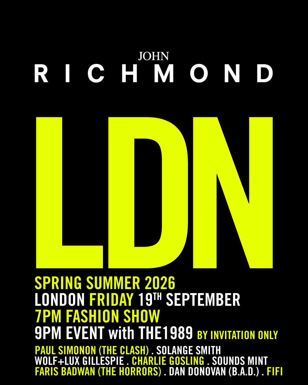 Londra apre la scena. Per la Primavera/Estate 2026, John Richmond presenta Culture Vulture durante la Fashion Week con un evento esclusivo nello storico club STEREO a Covent Garden.