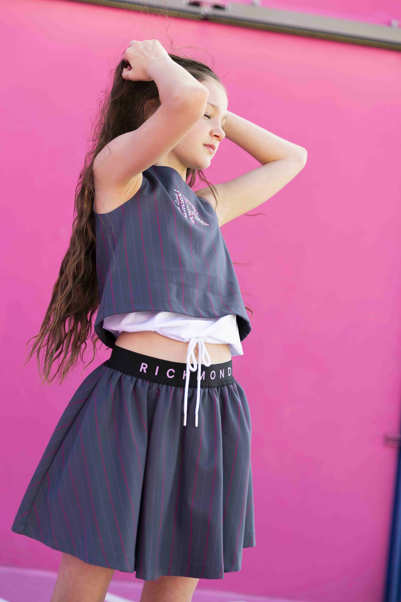 From the very beginning, Eva Leah played an active role in the creative process, working closely with the John Richmond Kids design team. From ideas and sketches to styling and storytelling, her energy and personal vision shape a collection that feels playful, expressive and full of personality.