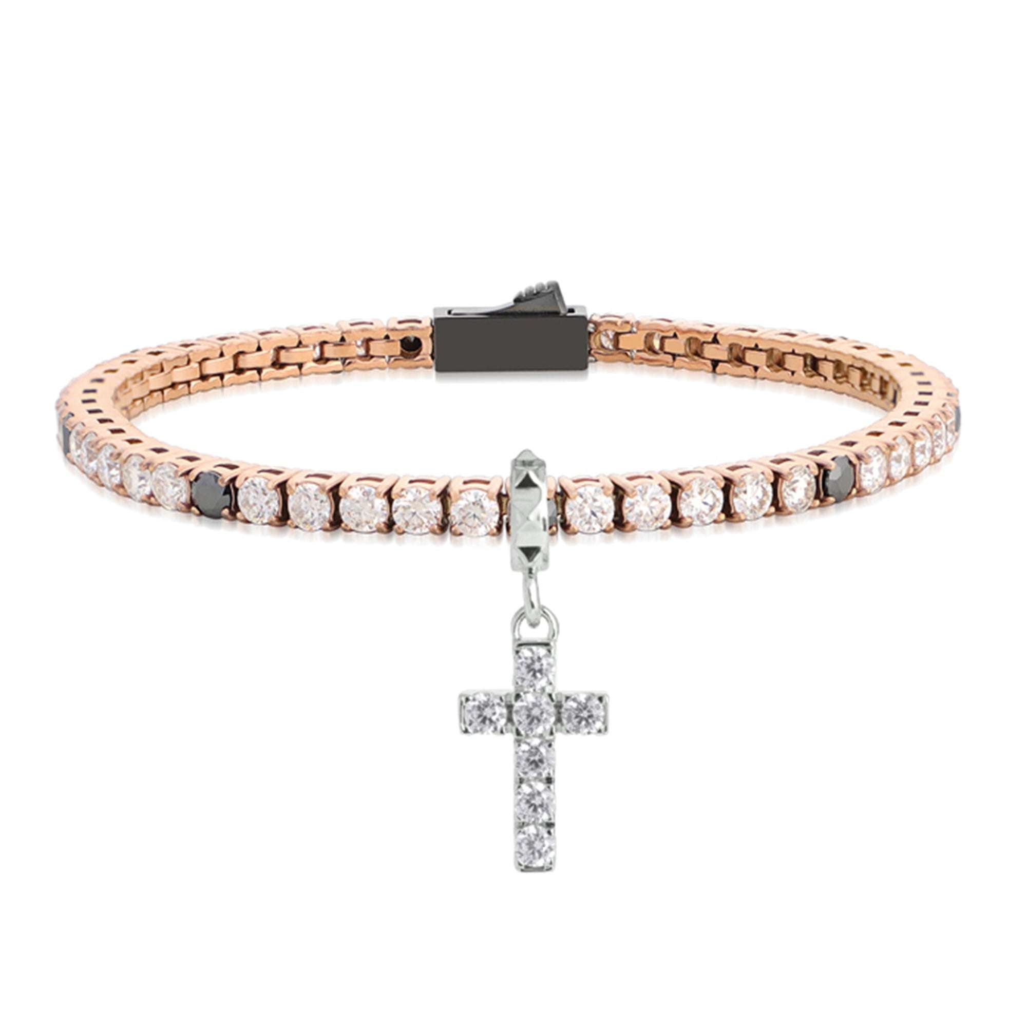 Tennis in lega di titanio rosè IP e diamanti lab ahite e black ct. 5.40 - L 20cm