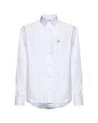 Questa camicia dal taglio essenziale si distingue per un dettaglio logo discreto sul petto che aggiunge un tocco distintivo al look. Ideale per contesti formali o smart-casual, garantisce un aspetto curato e contemporaneo.